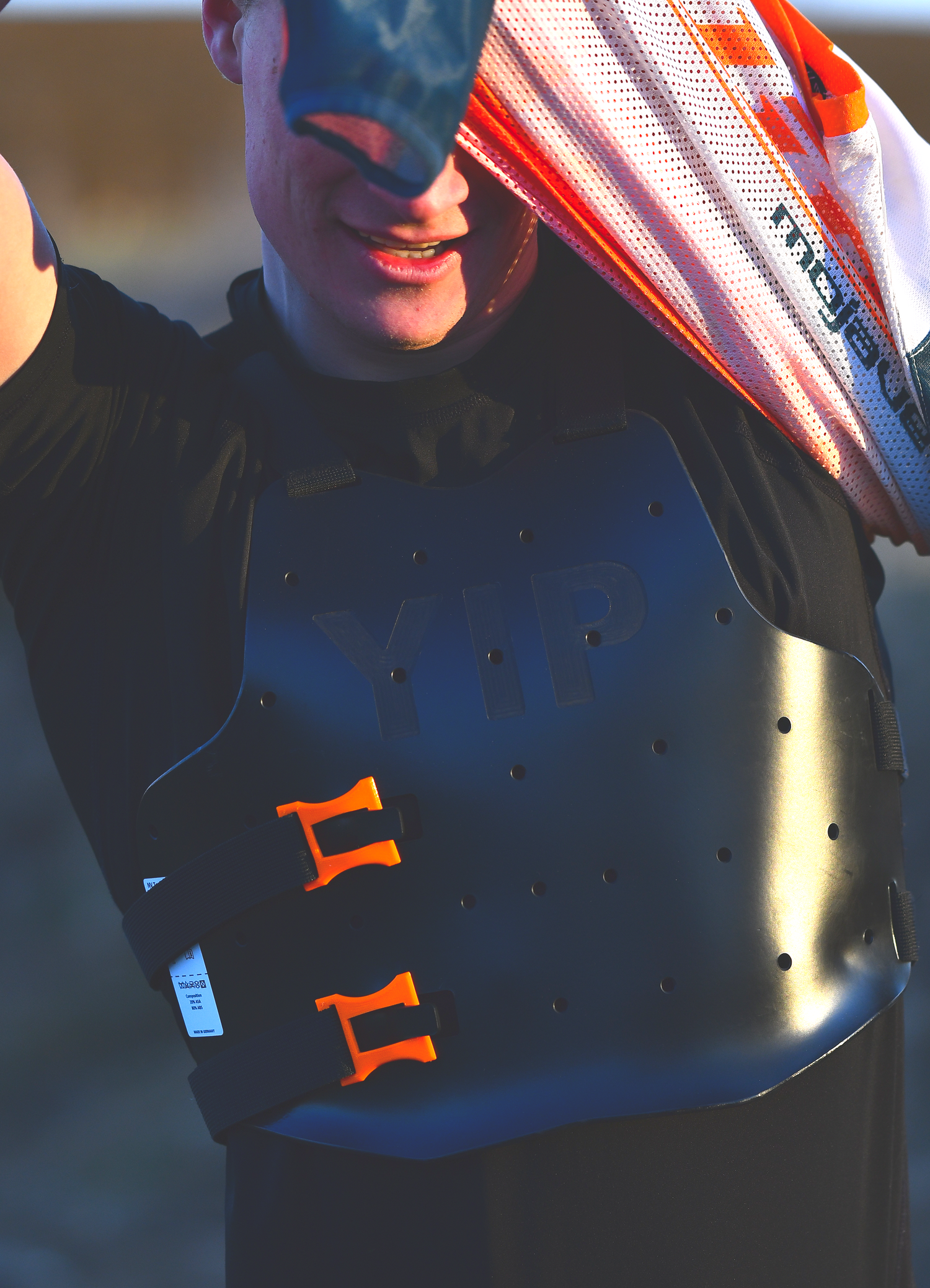 Der Brustpanzer wird so groß wie möglich gestaltet, ohne die Bewegungsfreiheit zu beeinträchtigen. Die Länge des Rückenprotektors geht etwas über die Hose hinaus, um den bestmöglichen Schutz zu gewährleisten, ohne den Protektoren zu spüren.